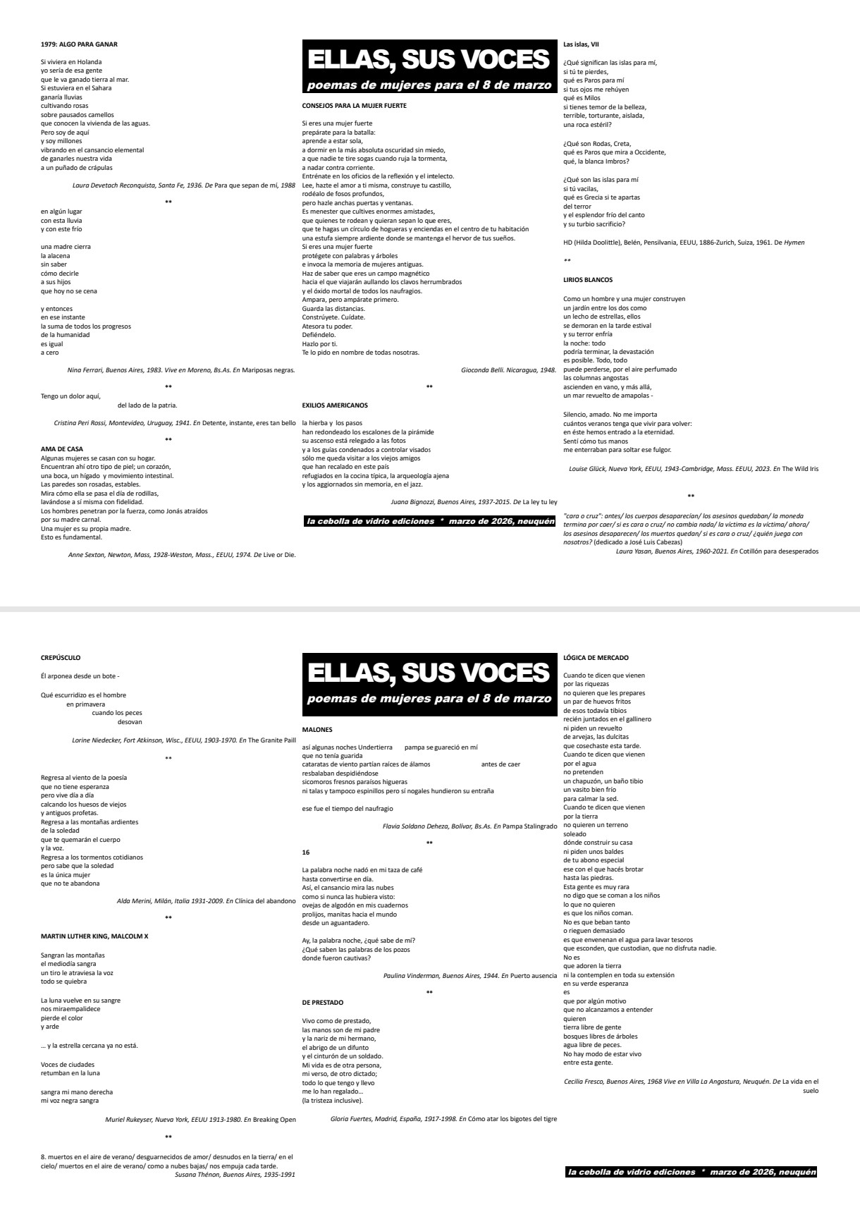 La Cebolla de vidrio ediciones. Marzo 2026. Neuquén