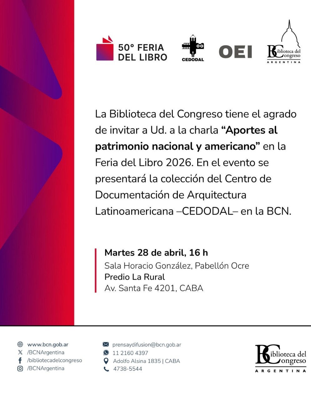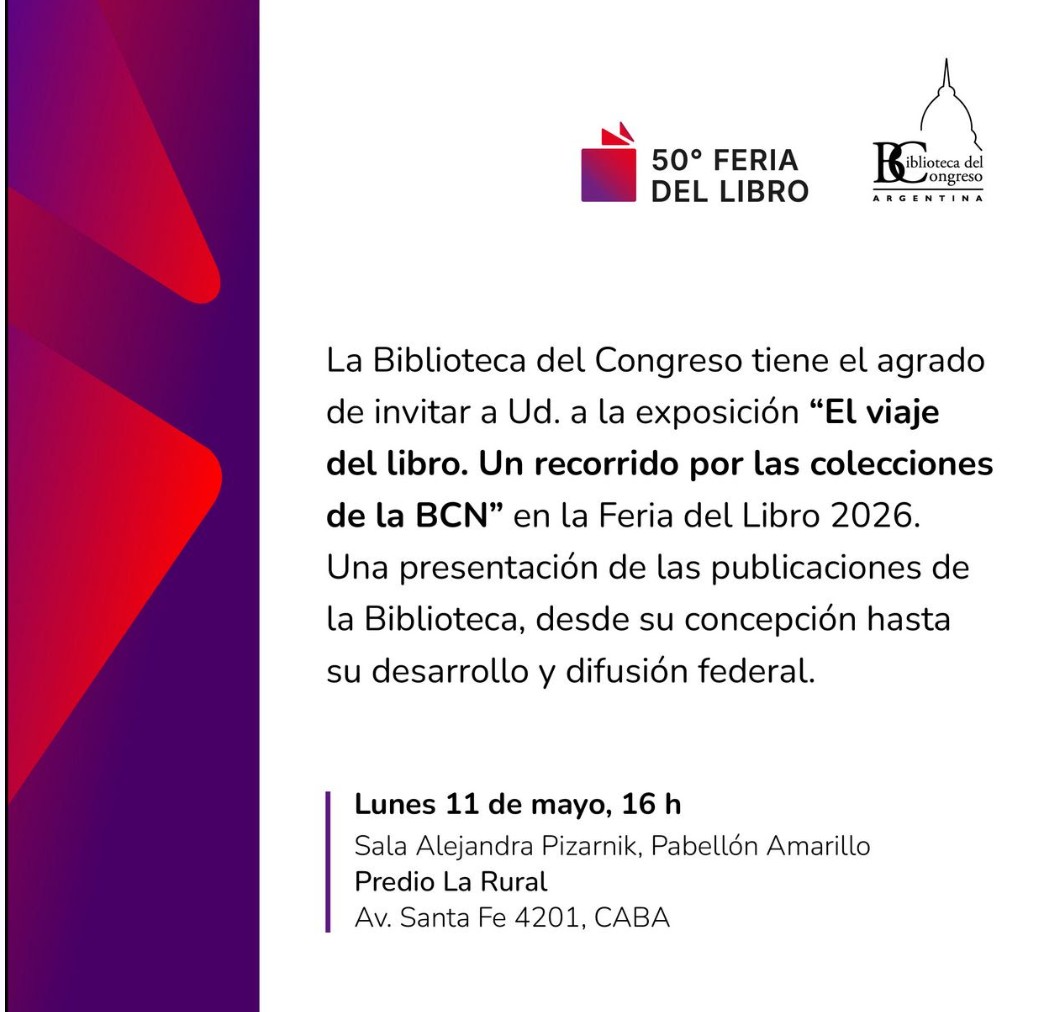 Con esta programación, la Biblioteca del Congreso de la Nación reafirma su compromiso con la democratización del acceso a la información, la promoción del pensamiento crítico y la valorización del patrimonio cultural, en el marco del principal encuentro editorial del país.